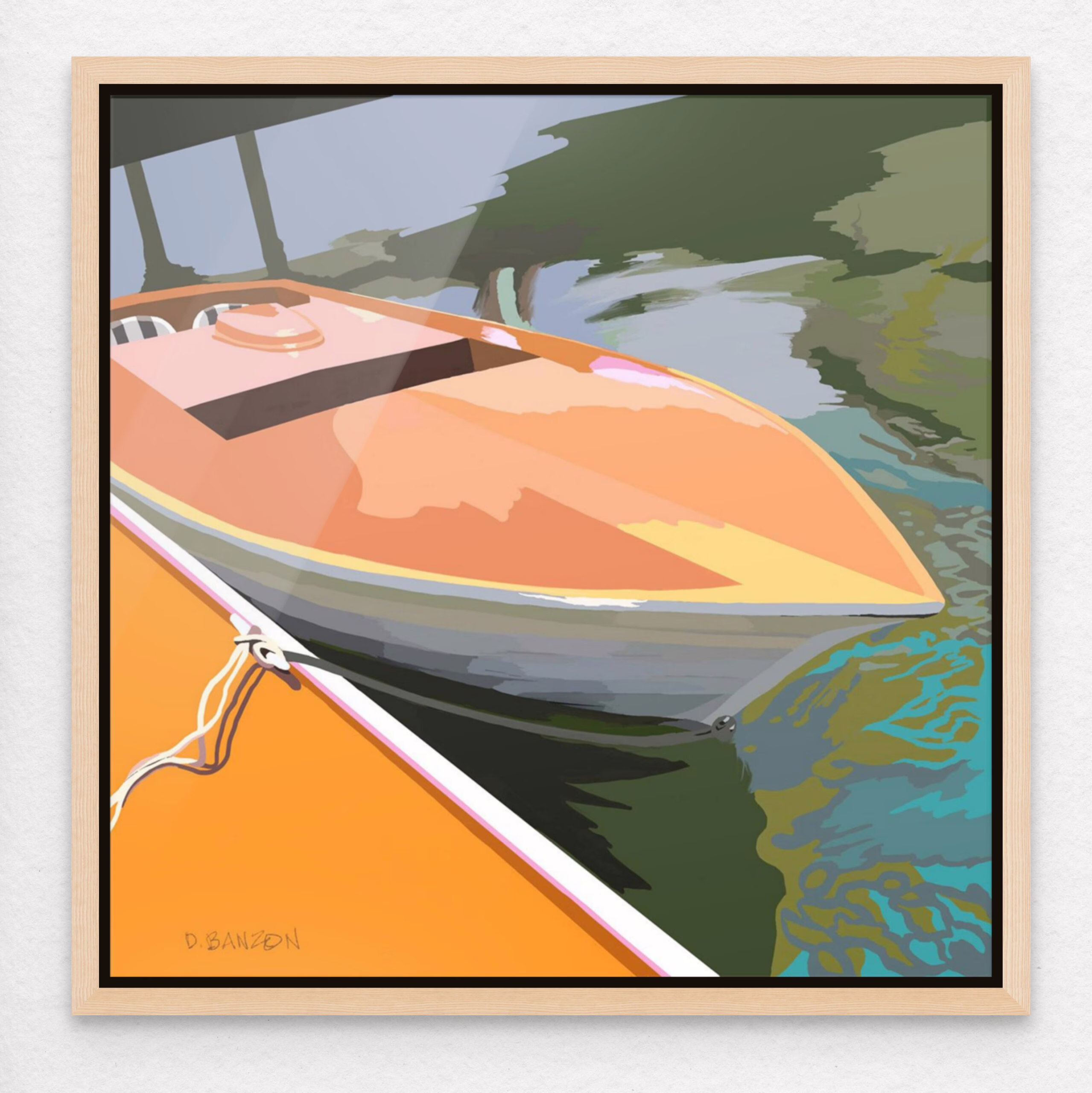Dorothy Banzon’s “Nautical Hard-Edged Collection” beautifully melds her impressionist painting and graphic design backgrounds. Using her own photographs of maritime landscapes, historic structures and vessels, Banzon carefully draws, choosing sophisticated color interlays to bring life and vibrancy to each composition. Dorothy received a BFA in Advertising/Design from Moore College of Art. She has been practicing as a graphic designer/art director for 35+ years. Her studies in oil painting began in 2019.